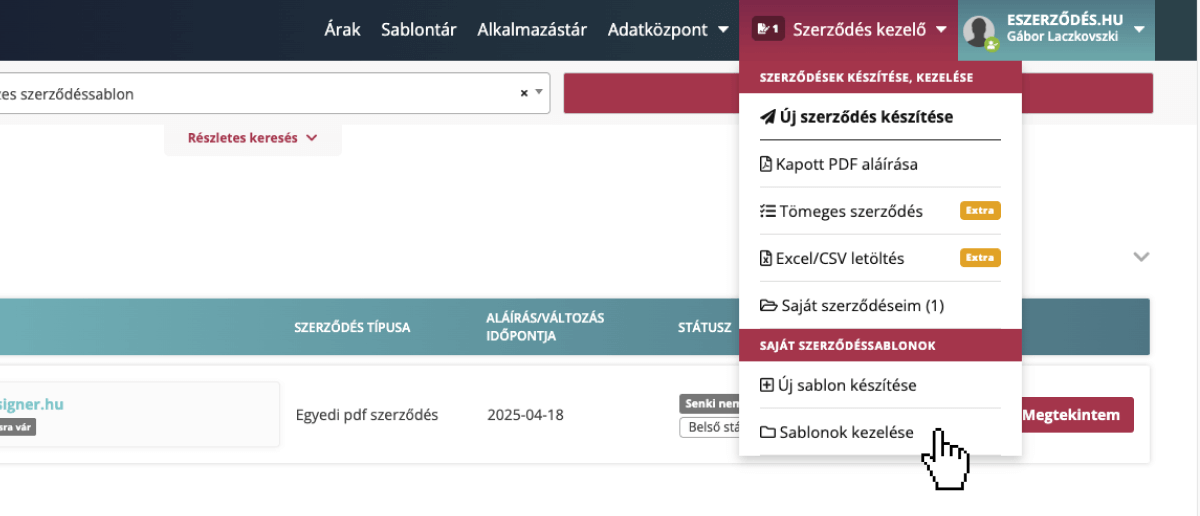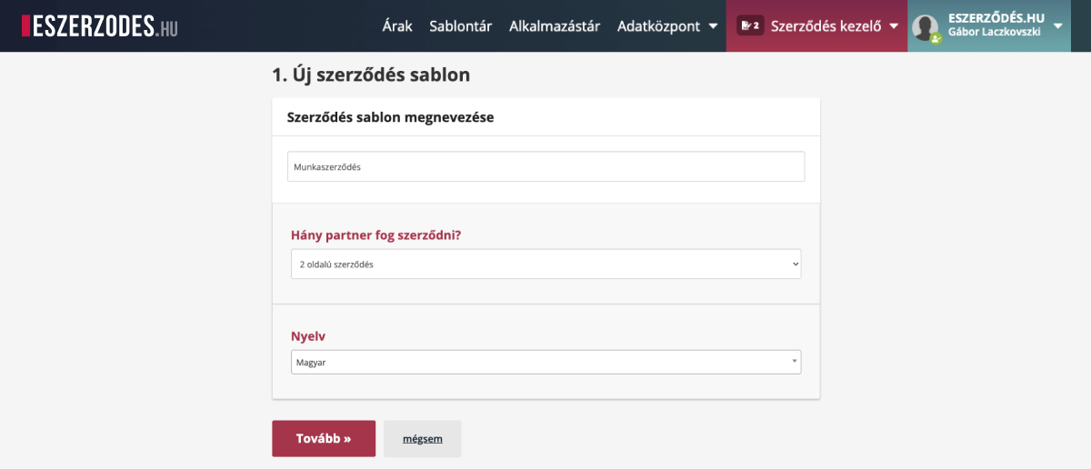 Adjon nevet a sablonnak, majd a legördülő menüből válassza ki, hány aláíró fogja véglegesíteni a szerződést, és állítsa be a dokumentum nyelvét is.
