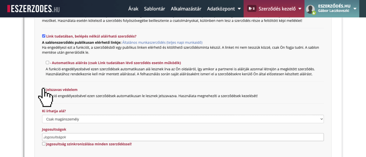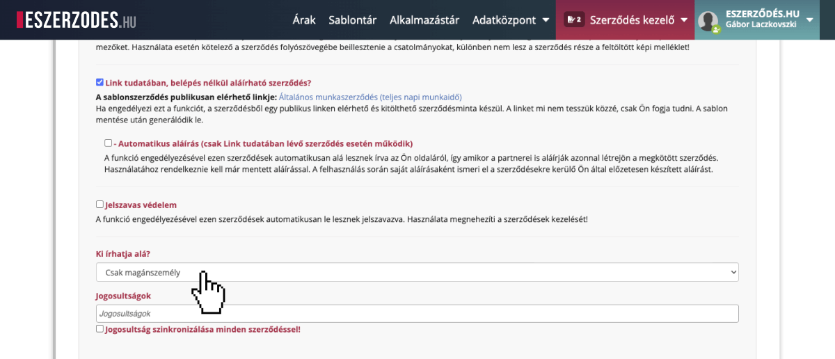 Ki írhatja alá? Korlátozza, hogy csak magánszemélyek vagy vállalkozások írhatják alá a szerződést, elkerülve a hibás kitöltést.