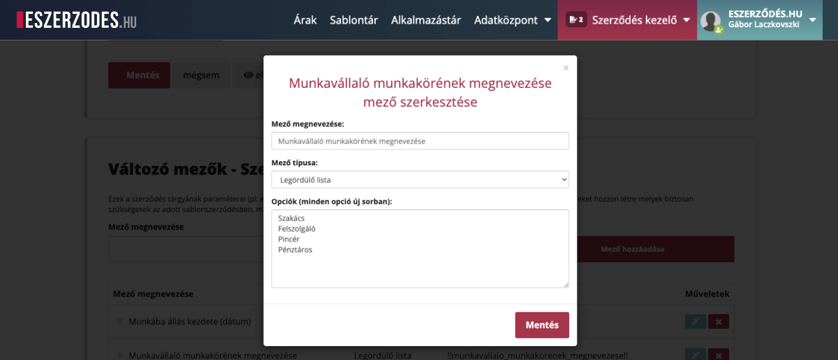 Adjon minden mezőnek egy beszédes, egyértelmű nevet (pl. „Munkába állás kezdete", „Munkavégzés helye"). Válassza ki a mező tartalmának megfelelő adattípust (például egysoros szövegmező, legördülő lista, képi csatolmány), hogy a rendszer a bevitelkor érvényesítse az értékeket. A fogadó fél tölti ki mezők típusokat kizárólag a szerződést fogadó fél töltheti ki, így ha ezt választja, nem kell külön adatbekéréssel bajlódnia. Ez felgyorsítja a folyamatot és biztosítja, hogy minden információ pontosan ott szerepeljen, ahol annak lennie kell.
